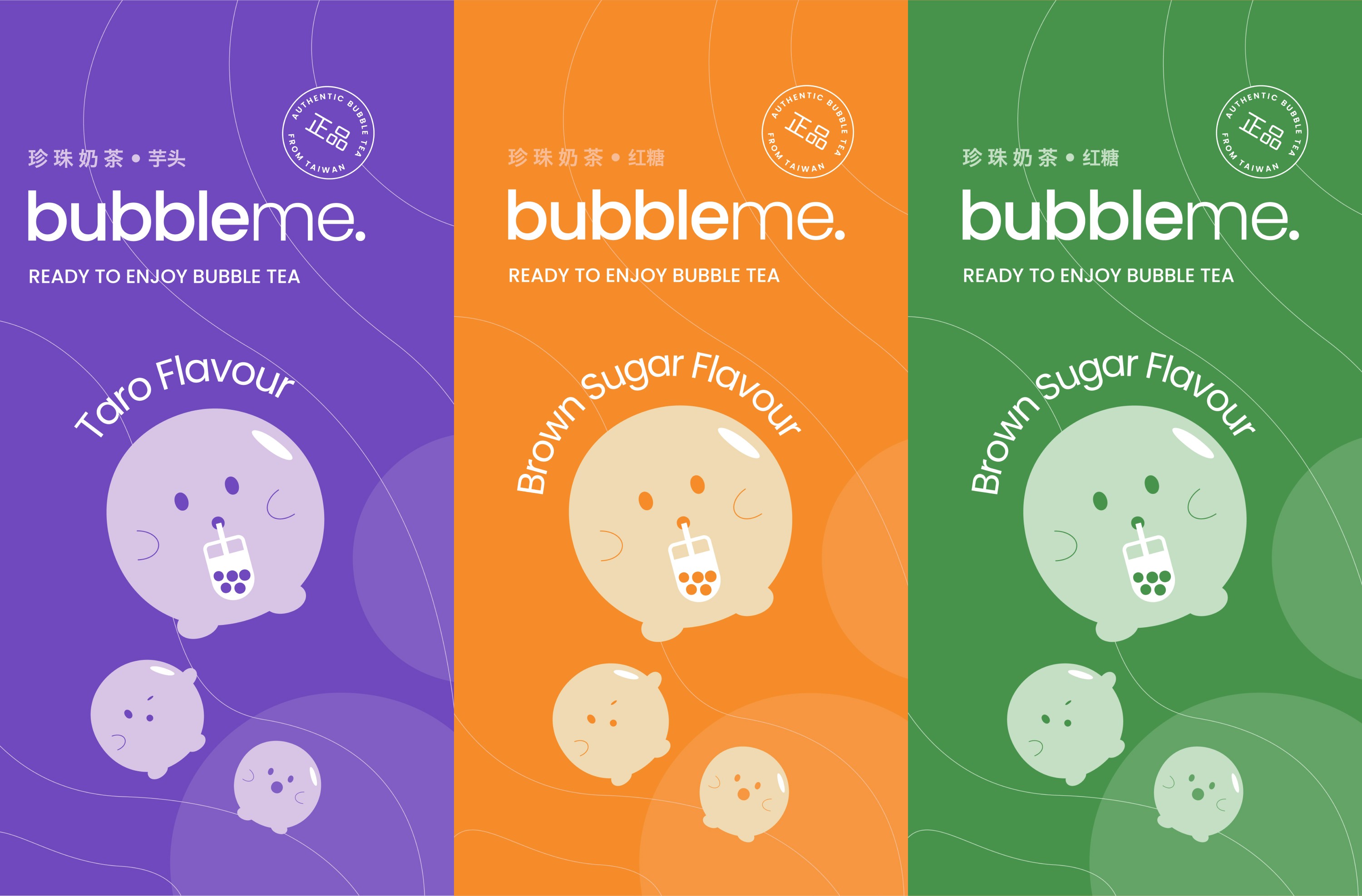 BubbleMe is a beverage brand founded with the ambition to bring authentic Taiwanese bubble tea into the Australian market. The opportunity was to create a brand that embraces its cultural origins, expresses them with clarity and confidence, and stands out on shelf through strong visual recognition.